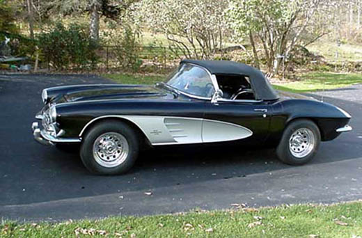 | The 1961 Corvette had a new rear end styling and the first model with a four taillight look that became a Corvette tradition. It was also the last model to feature optional two-tone side cover paint and the 283 CID engine. It was also the first model with exhausts exits below the body and a radiator expansion tank. |