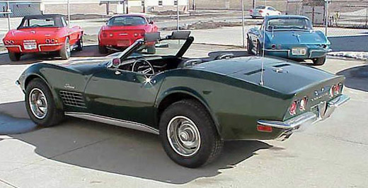 | Big Block engines increased to 454 CID. The Small Block remained with 350 CID but a new high performance LT1 350 CID generated 370 HP. This was the last year for high compression engines. THe body was slightly modified to include fender flares behind the wheels. |